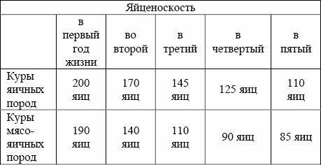 Для разведения лучше всего держать молодую птицу, так как ее продуктивность выше, чем переярой. Но инкубационные качества яиц более взрослых кур лучше, чем яиц молодых кур. Изменения яйценоскости кур вы можете проследить по таблице.