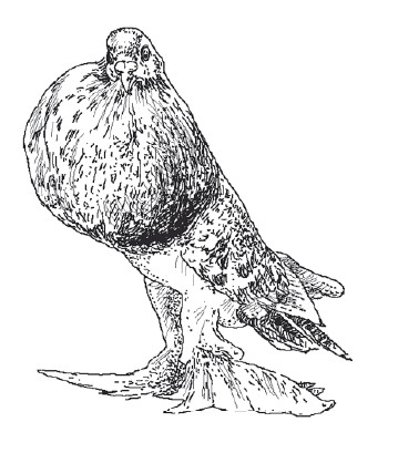 Крылья длинные, плотно прилегают к телу, слегка касаются кончика хвоста. Хвост длинный, широкий, слегка закругленный. Ноги высокие, с густым и длинным оперением (120–140 мм).