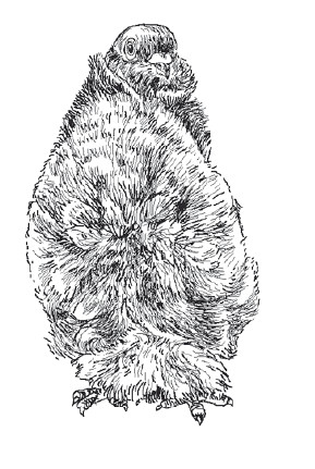 Если посмотреть на голубя спереди, то на его груди можно увидеть горизонтальную дорожку, разделяющую перья на нижнюю часть, называемую передником, или нижней подушкой, и верхнюю, называемую верхней подушкой, или верхним передником. Обе части состоят из длинных, густых, наклонно поставленных перьев. Перья нижней подушки растут нормально, вниз, а перья верхней подушки растут вверх, закрывая весь зоб или нижнюю часть шеи. Отдельные опахала имеют в нижней части несцепленные бородки пуховидной природы. На горле и частично на шее, вплоть до края верхней подушки, перья разделены на две половины и образуют сплошной перьевой покров, доходящий почти до глаз, в форме воротника. И, наконец, перед «бедрами» имеются так называемые кисточки.