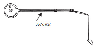 Самая интересная ловля, на мой взгляд, конечно, на мормышку. Очень тонкая леска, чувствительный сторожок и мелкая мормышка всегда вызывают уважение к рыболову, который ее применяет. Лично я беру леску от 0,1 до 0,12мм, так как плотва по первому и особенно по последнему льду сопротивляется при вываживании, и леска 0,07-0,08 мм, даже очень хорошая, разрывается, как швейная нитка Это происходит в том случае, если пользуются глухой снастью. Глухая снасть (удочка с мотовильцем или с катушкой, оснащенная стопором) при ловле плотвы не очень удобна, так как глубина ловли не превышает 3–3,5 м, а чаще 1,5–2 м. При этом эластичности лески при подсечке не хватает, и вы обрываете леску. Могу рекомендовать вам скользящую снасть. Это удочка с катушкой без стопора, регулировочным болтом и мягким хлыстиком (рис. 7).