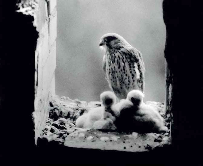 Терпимость к присутствию человека, пожалуй, даже доверчивость сделали эту птицу в некоторых местах почти городской жительницей – охотно селится на высоких домах. Нынешние многоэтажные корпуса, глядящие окнами в поле, повсеместно пустельгу привлекают. О гнездах и даже колониях соколов сообщают из Варшавы, Мюнхена, Лондона, Ленинграда, Полтавы. Птицы селятся в чердачных вентиляционных проходах, во всякой удобной щели, даже и на балконах, доставляя людям редкое зрелище – наблюдать за развитием соколиной семьи. Отмечены гнездовья пустельги в окраинных кварталах Москвы. И целая колония соколов устойчиво вот уже несколько лет держится в Зеленограде. Этот город-сад, окруженный полями, не случайно понравился пустельге: укромные места для кладки яиц в домах-башнях соседствуют с угодьями для охоты. Загнездилась сначала парочка соколов (1980 год). Потом две пары. В этом году на заметке пять гнезд, расположенных поблизости друг от друга, – все в вентиляционных чердачных щелях домов.